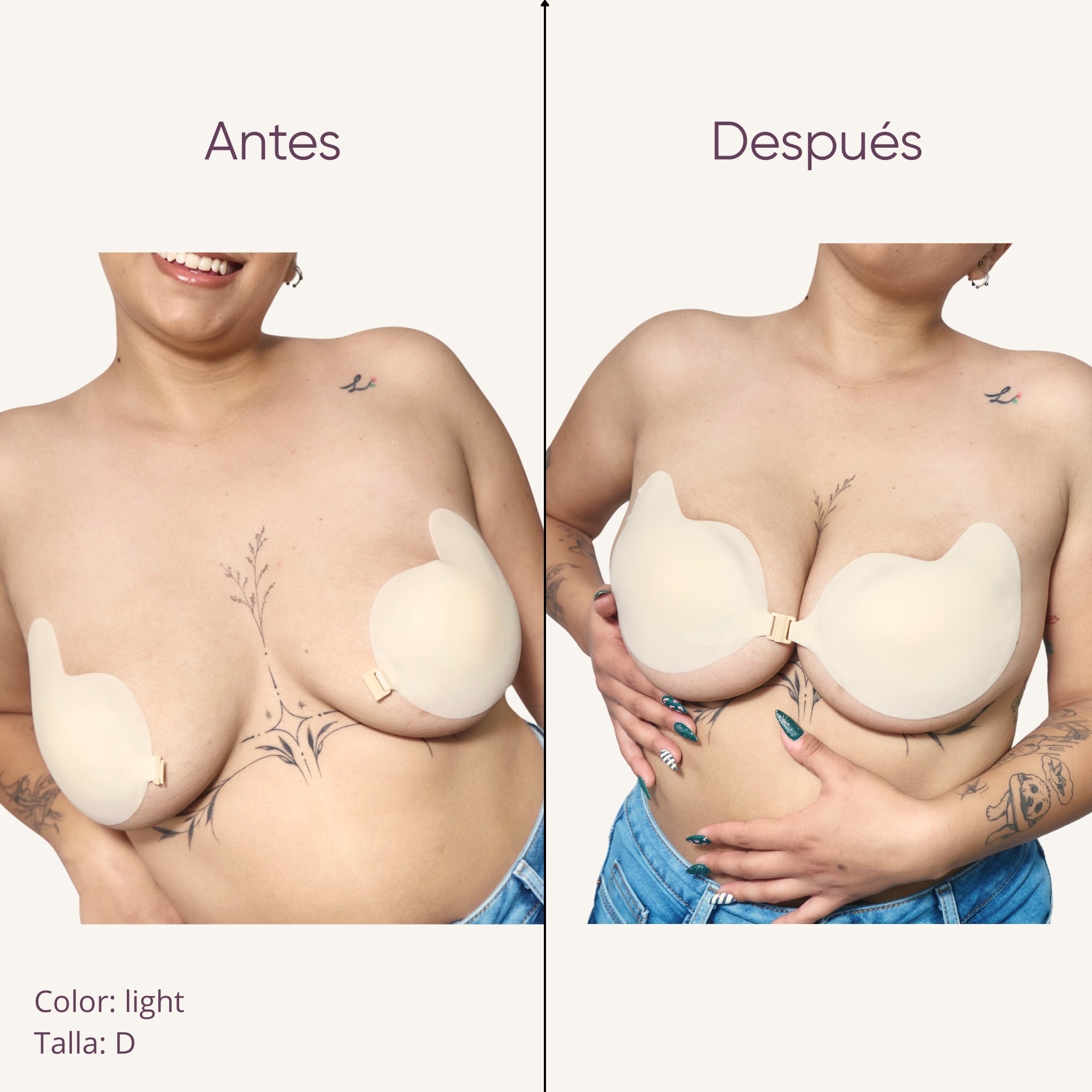 Copas adhesivas reutilizables con broche delantero